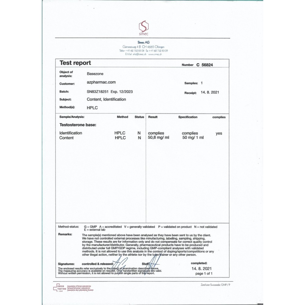 Spezifikationen Basezone Testosterone AlphaZone Pharmaceuticals