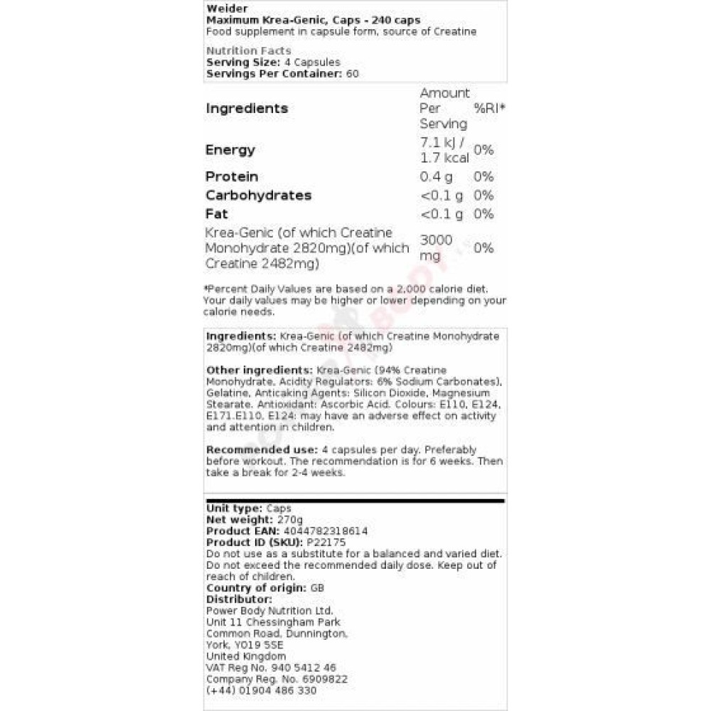 Spezifikationen Maximum Krea-Genic Weider Weider