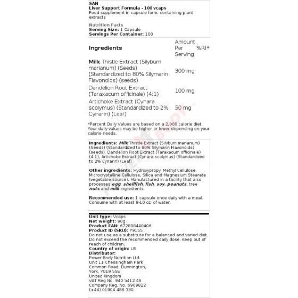 Spezifikationen San Liver support formula San