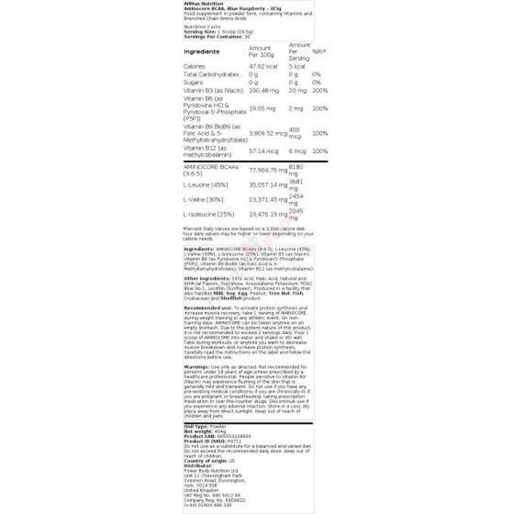 Spezifikationen AllMax Nutrition Aminocore BCAA AllMax nutrition